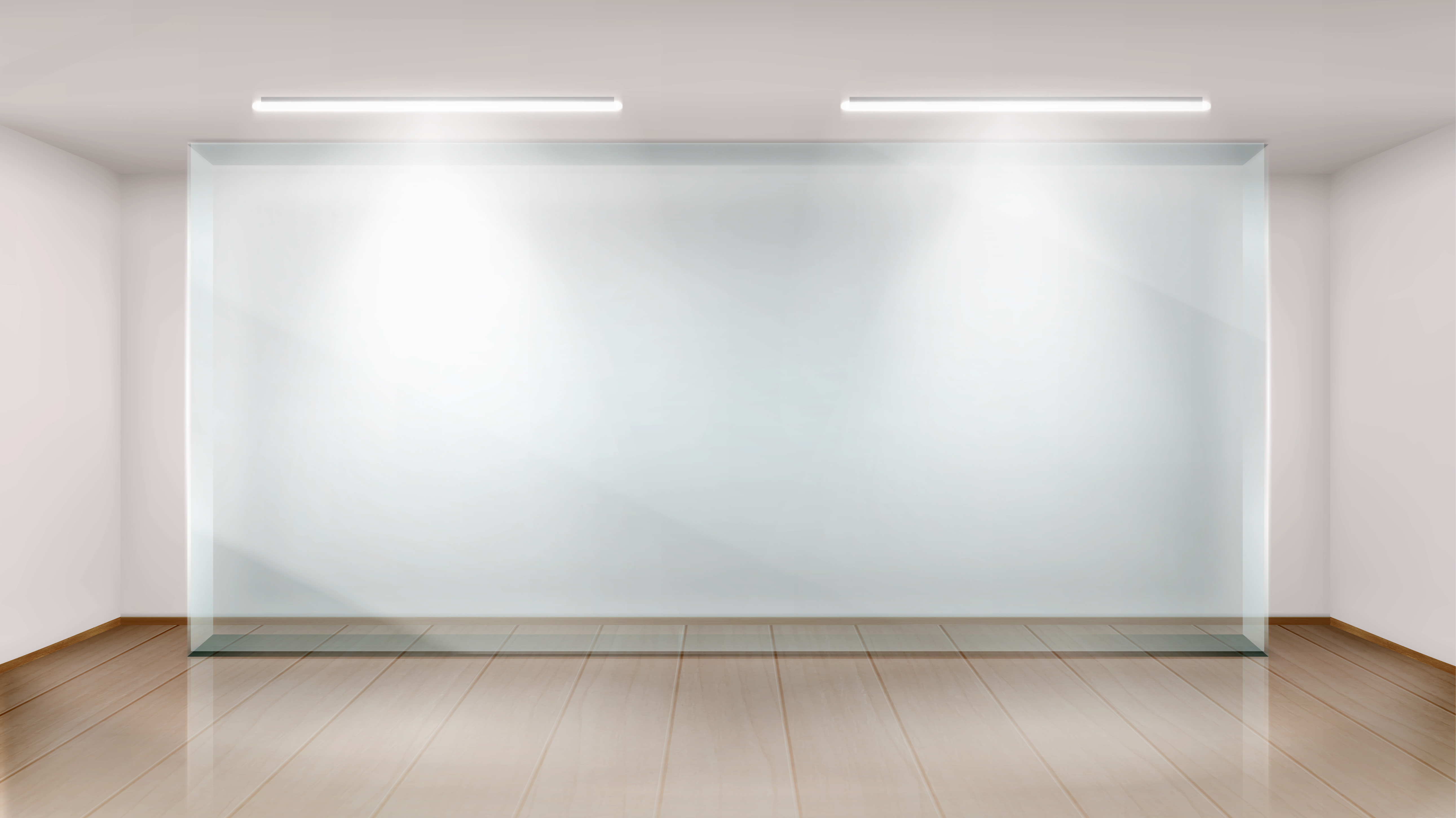 Empty exhibition room with glass wall frame