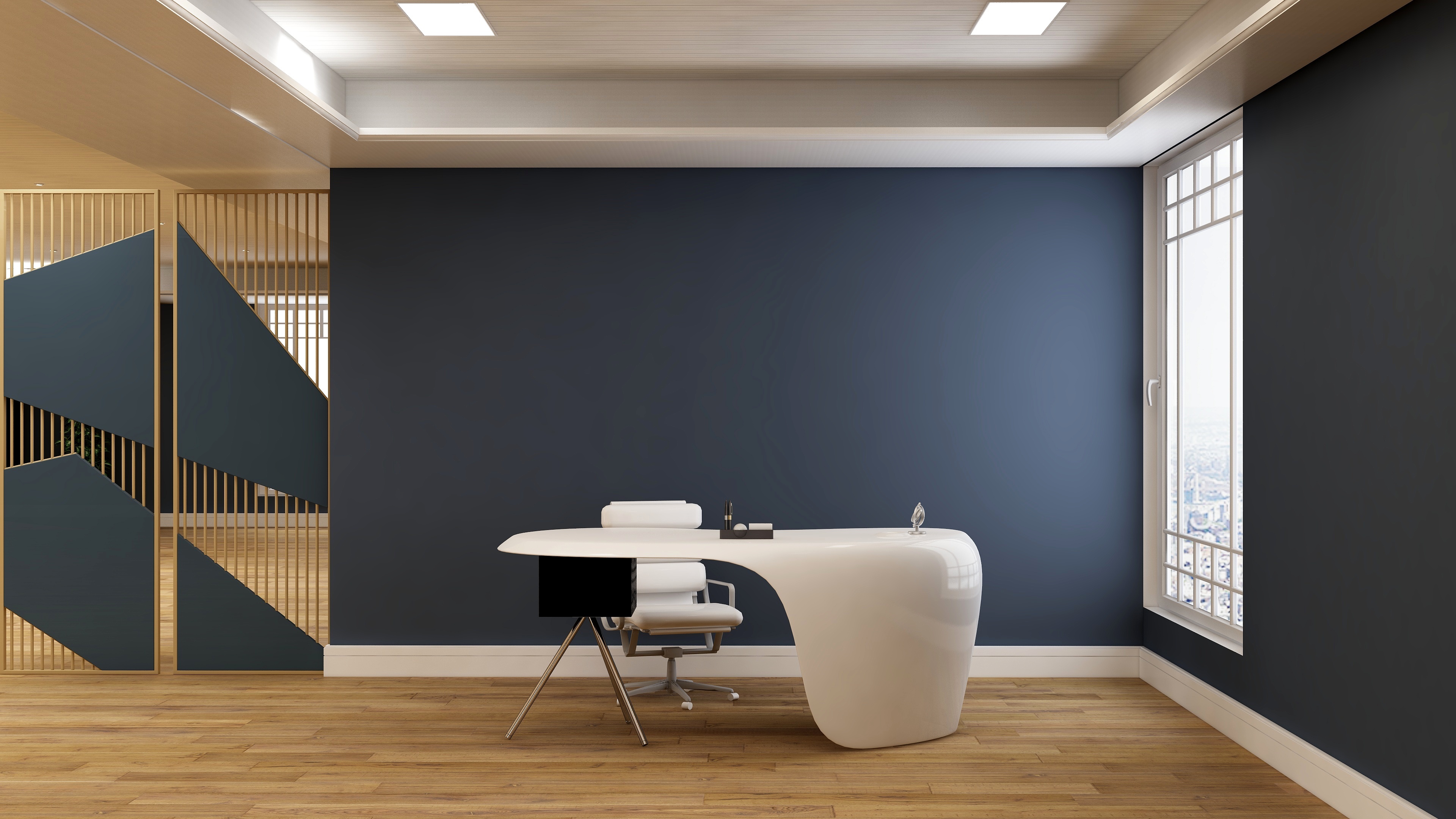 office front desk or receptionist room with wooden design interior