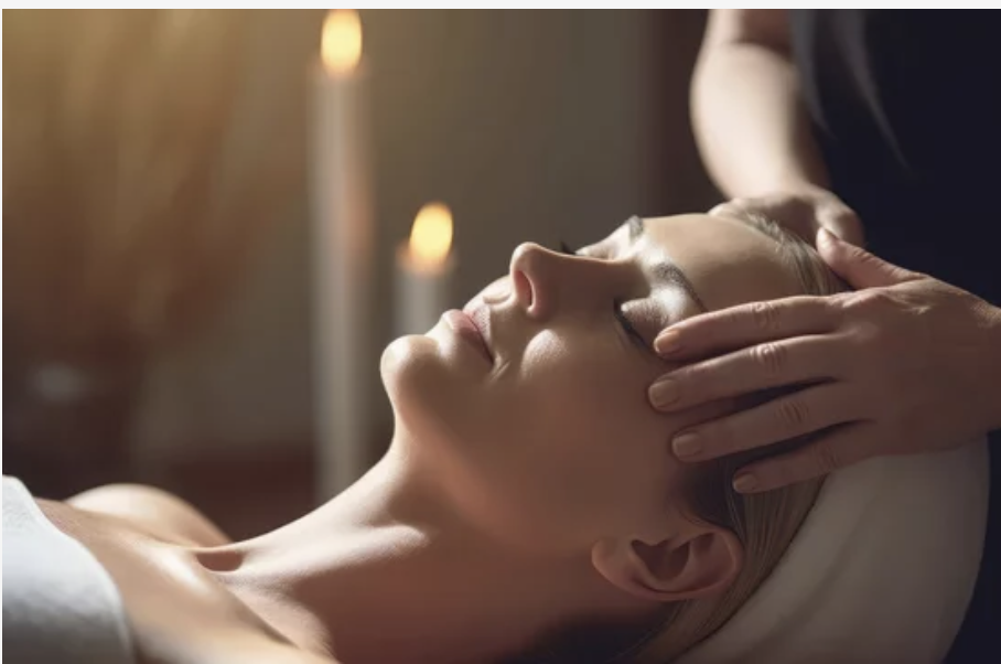 Face Massage.  Close-up of a Young Woman Getting Spa Treatment.